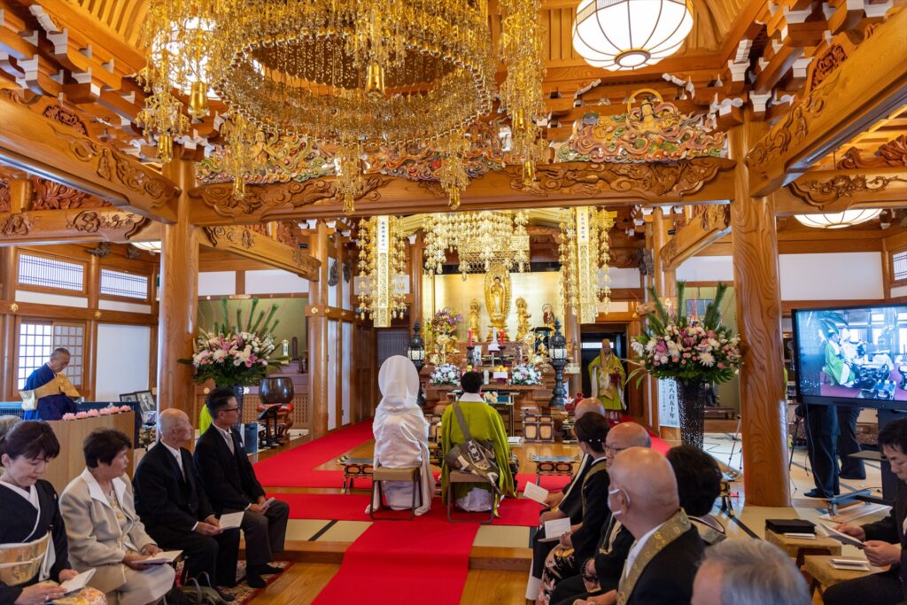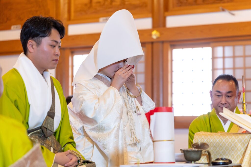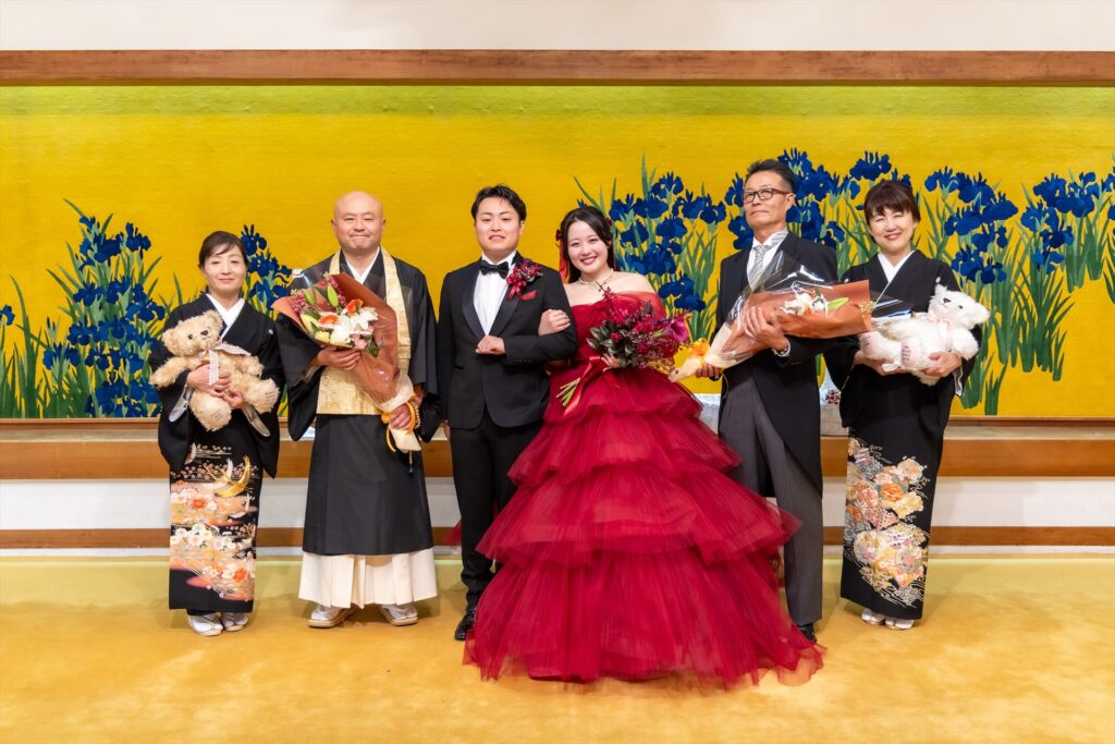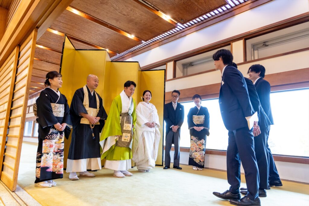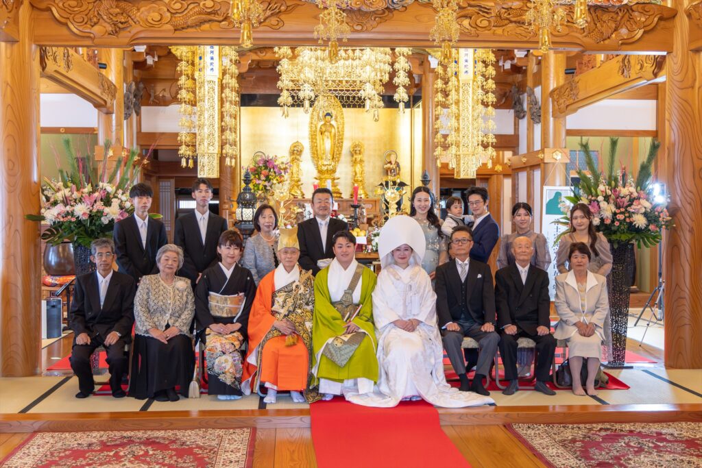 自坊での挙式だったので不安もありましたが、その都度相談に乗っていただいて厳かに和やかに挙げることができました。仏式の結婚式を初めて見た友人も「お寺で挙げるのもいいね!」と言ってもらい大満足です!