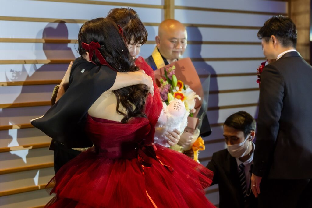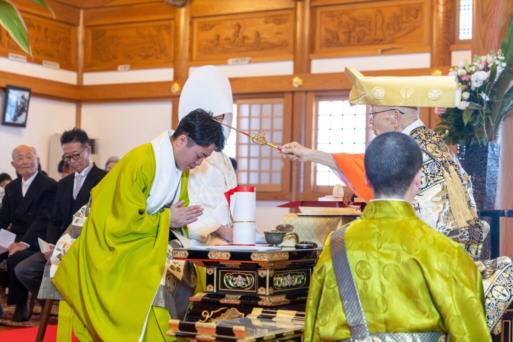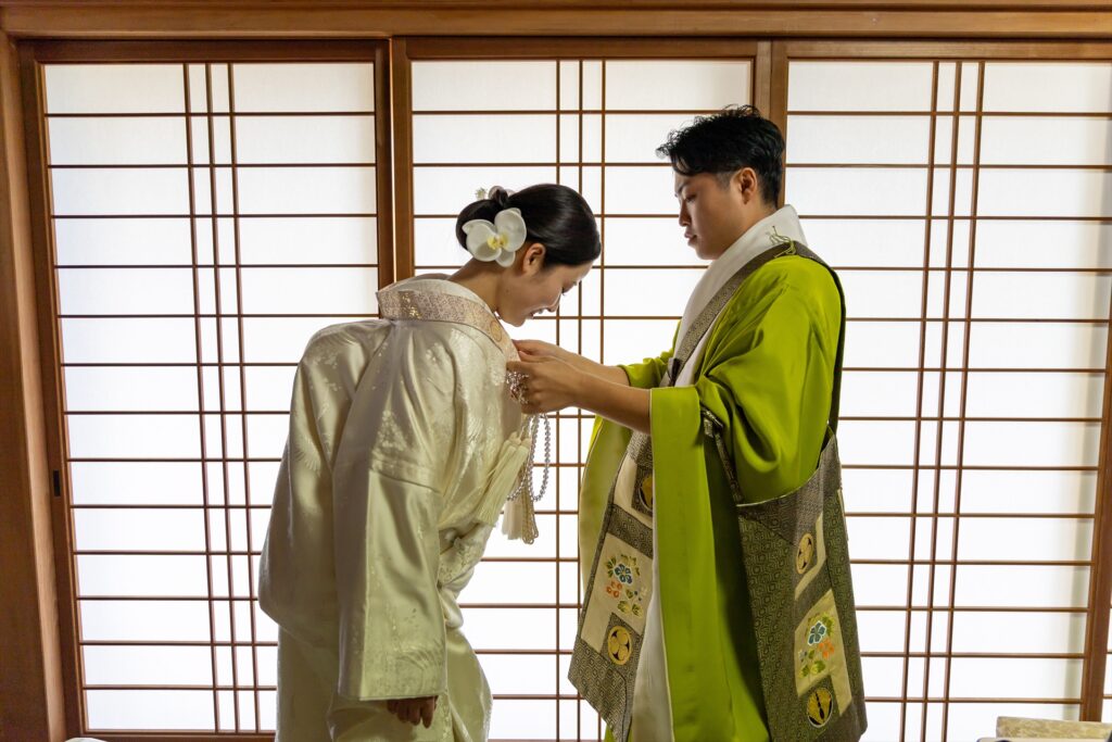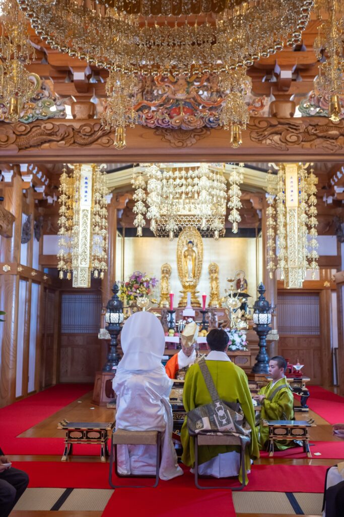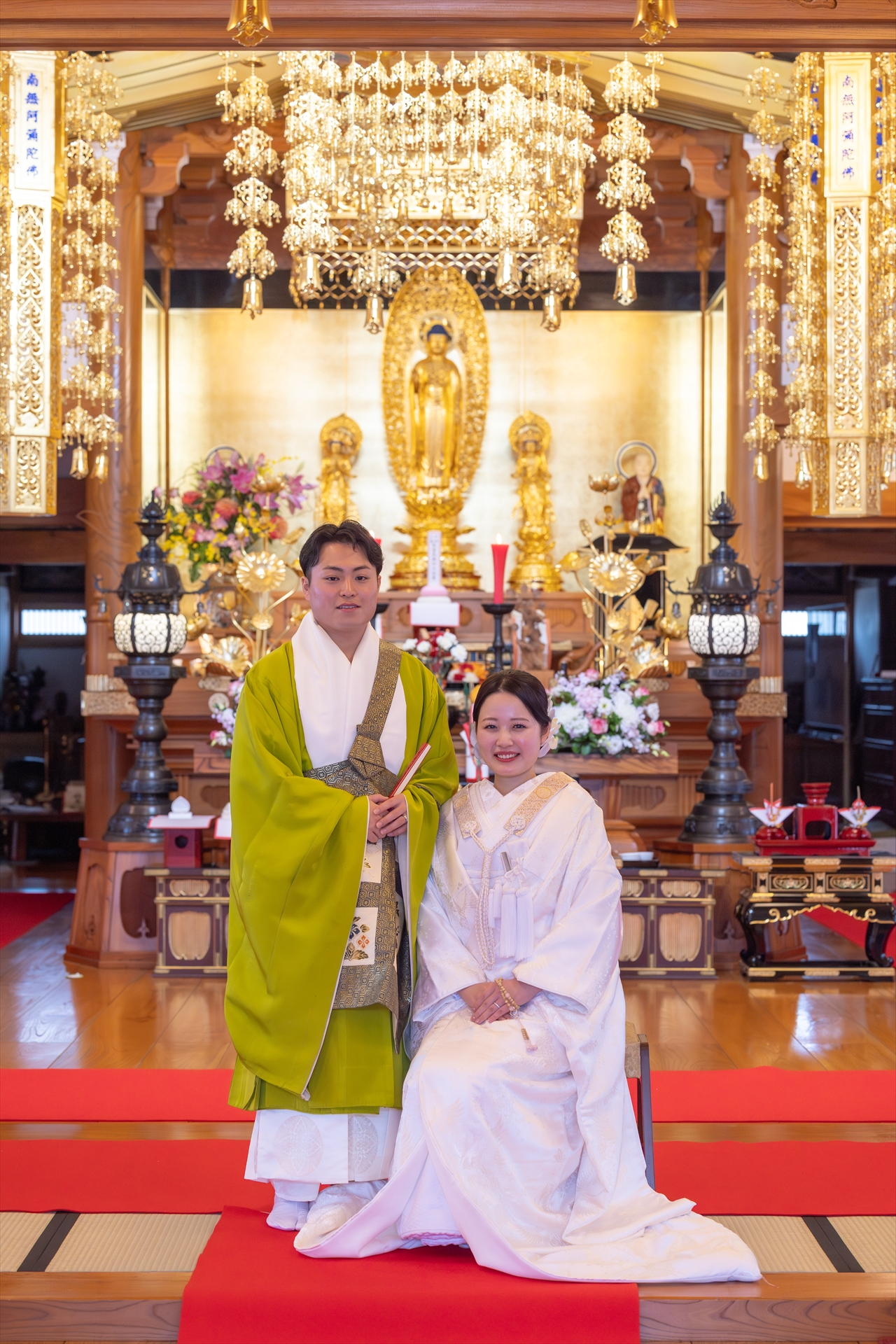 自坊での挙式だったので不安もありましたが、その都度相談に乗っていただいて厳かに和やかに挙げることができました。仏式の結婚式を初めて見た友人も「お寺で挙げるのもいいね!」と言ってもらい大満足です!