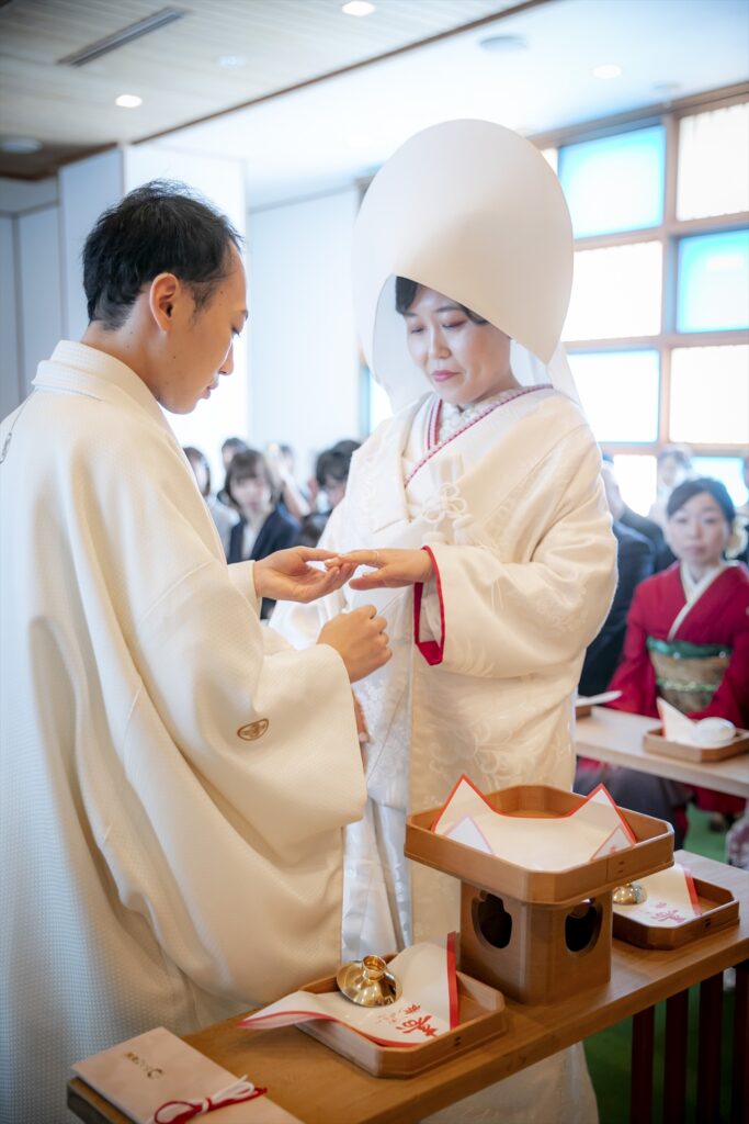 神前式の厳かな雰囲気の中、挙式をとり行うことができました。